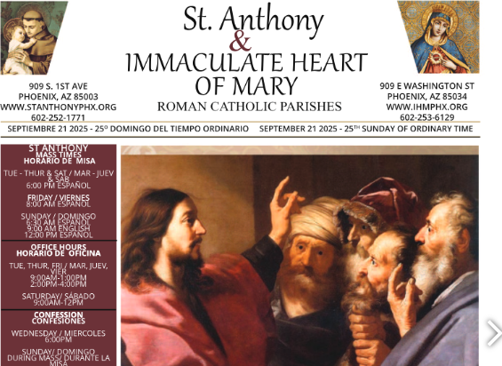 Saturday at 7:00 pm (Vigil) Spanish 7:30 am Spanish, 10:30 am Spanish, 1:30 pm Spanish, 5:00 pm Spanish, 7:00 pm Spanish